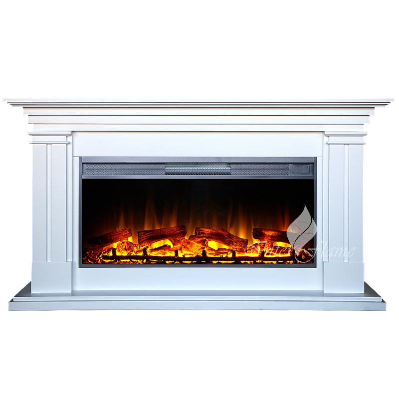 Камин в стиле Современная классика с очагом 42 дюйма. Эффект пламени: пылающие поленья, которые сделаны по слепку настоящих дров. Реалистичное мерцающее пламя с регулировкой яркости. Работает в декоративном режиме и на обогрев. Новый кварцевый обогреватель с функцией «климат-контроль» спрятан в верхней части очага, обеспечивает обогрев в холодную погоду, а что самое главное – не сжигает кислород в помещении! Действительно реалистичный звук потрескивания дров. Управление функциями очага производится на сенсорной панели на корпусе или с пульта ДУ.