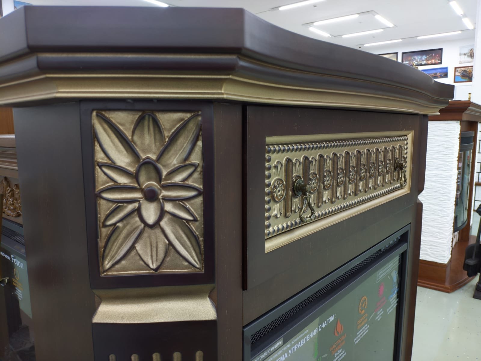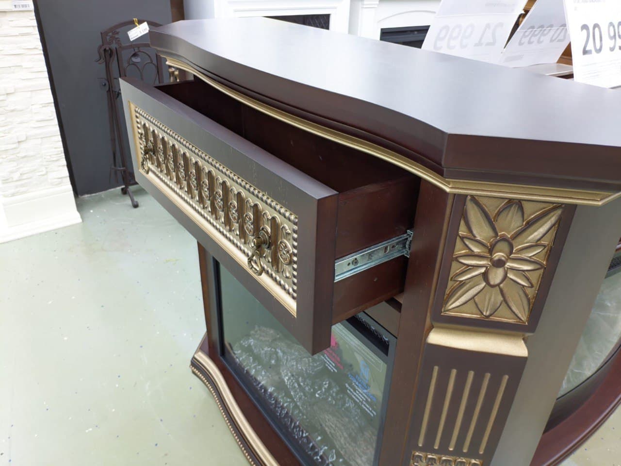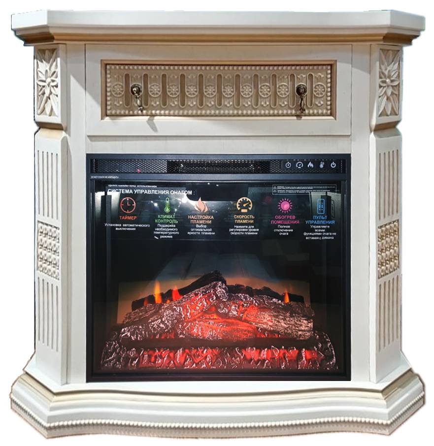 ДЖЕССИКА с выдвижным ящиком (цвет на выбор: бежевый с золотой патиной, тёмный дуб с золотой патиной, венге с золотой патиной)/ JESSICA /с очагом Фотон 23″ Размеры, мм: 940 (ш) х 980 (в) х 325 (г)