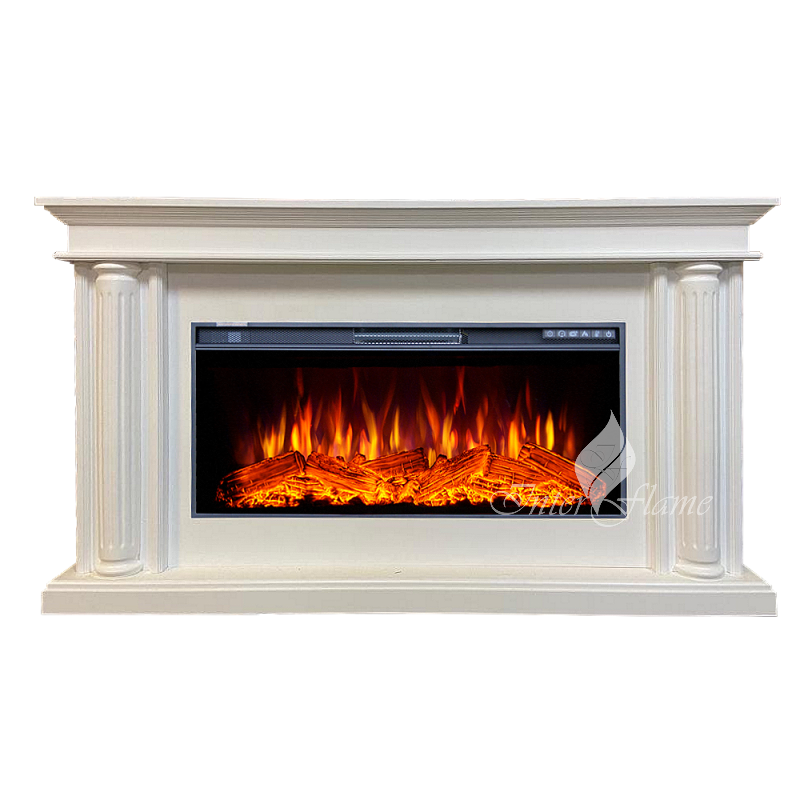 Камин в классическом стиле с очагом 40 дюймов. Новый очаг с эффектом пылающих поленьев. Крупные, налитые жаром дрова. Эффектное пламя с регулировкой яркости и регулировкой цвета пламени (традиционное красно-жёлтое, с зеленым оттенком, с сиреневым оттенком) Новая функция: Регулировка скорости пламени. Реалистичный звук потрескивающих поленьев. Работа в экономичном декоративном режиме и на обогрев. Кварцевый обогреватель с климатконтролем не сжигает кислород. Таймер на отключение. Все функции с пульта ДУ.