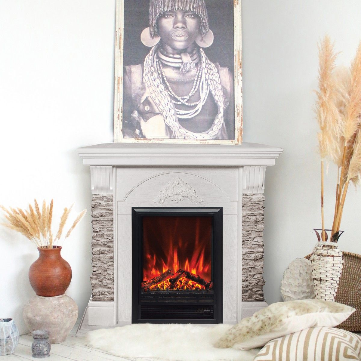Электрический камин RealFlame Eugene — это обязательный предмет интерьера для вашей гостиной, кухни, спальни или прихожей его предназначением является украшение и декорация вашего дома или офисного помещения. Достигается это посредством имитации пламени на экране очага и конвекторного обогревателя встроенного в корпус. Двухуровневый тепловентилятор обогреет за полчаса любое помещение — спальню, кухню, его можно просто поставить на пол или встроить в каминное обрамление, в нишу или в мебель — есть датчик защиты от перегрева. Камин используют в любую погоду зимой, осенью или весной, в квартире или на даче. Летом можно не включать обогрев — проекционная технология пламени имитирующая настоящий огонь работает в независимом режиме. У электрического очага Eugene по мимо звуковой имитации потрескивания дров есть дополнительные особенности: Пульт ДУ, регулировка яркости пламени, таймер отключения. Камин достаточно универсален в выборе стиля и дизайна оформления помещения.