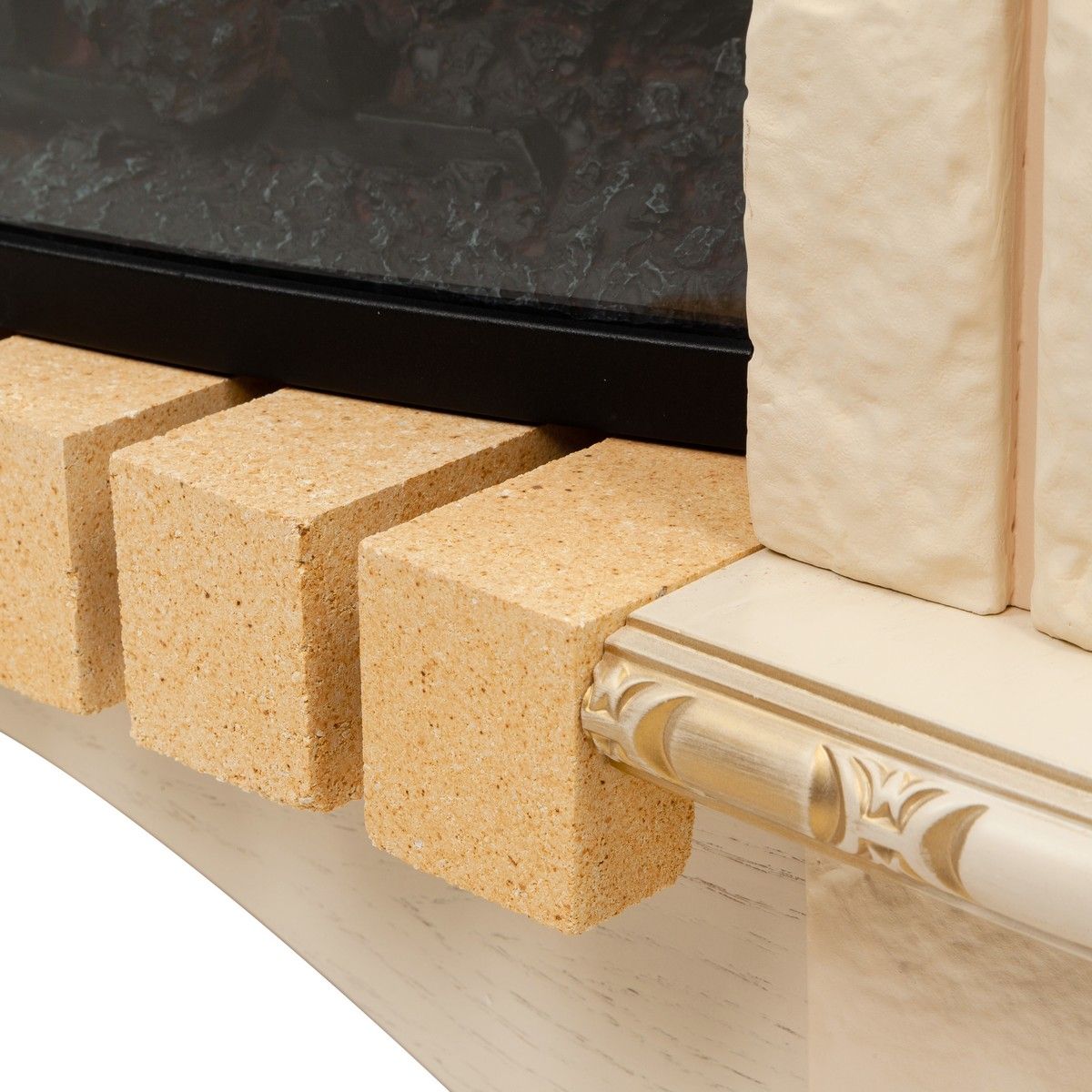 Электрический камин Bolero. Эффектное, и в тоже время не перегруженное деталями, обрамление в цвете дуб белый с золотой патиной, с очагом Firefield 25 SIR.