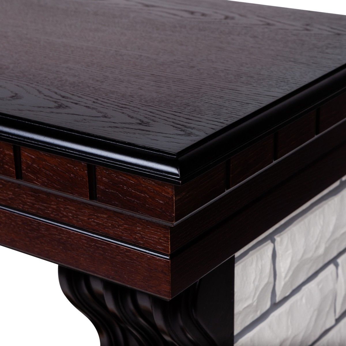 Портал в стиле «»кантри»». Изготовлен из искусственного камня и шпонированного МДФ. Камень белого цвета. Предназначен для очагов 25,5 дюймов.