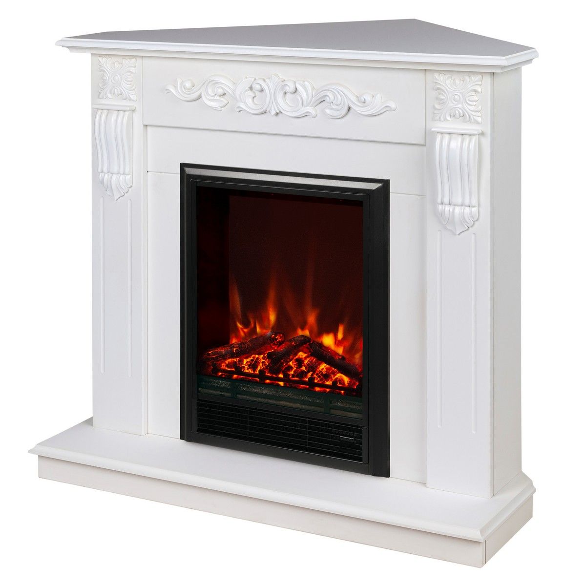 Электрический камин RealFlame Eugene — это обязательный предмет интерьера для вашей гостиной, кухни, спальни или прихожей его предназначением является украшение и декорация вашего дома или офисного помещения. Достигается это посредством имитации пламени на экране очага и конвекторного обогревателя встроенного в корпус. Двухуровневый тепловентилятор обогреет за полчаса любое помещение — спальню, кухню, его можно просто поставить на пол или встроить в каминное обрамление, в нишу или в мебель — есть датчик защиты от перегрева. Камин используют в любую погоду зимой, осенью или весной, в квартире или на даче. Летом можно не включать обогрев — проекционная технология пламени имитирующая настоящий огонь работает в независимом режиме. У электрического очага Eugene по мимо звуковой имитации потрескивания дров есть дополнительные особенности: Пульт ДУ, регулировка яркости пламени, таймер отключения. Камин достаточно универсален в выборе стиля и дизайна оформления помещения.