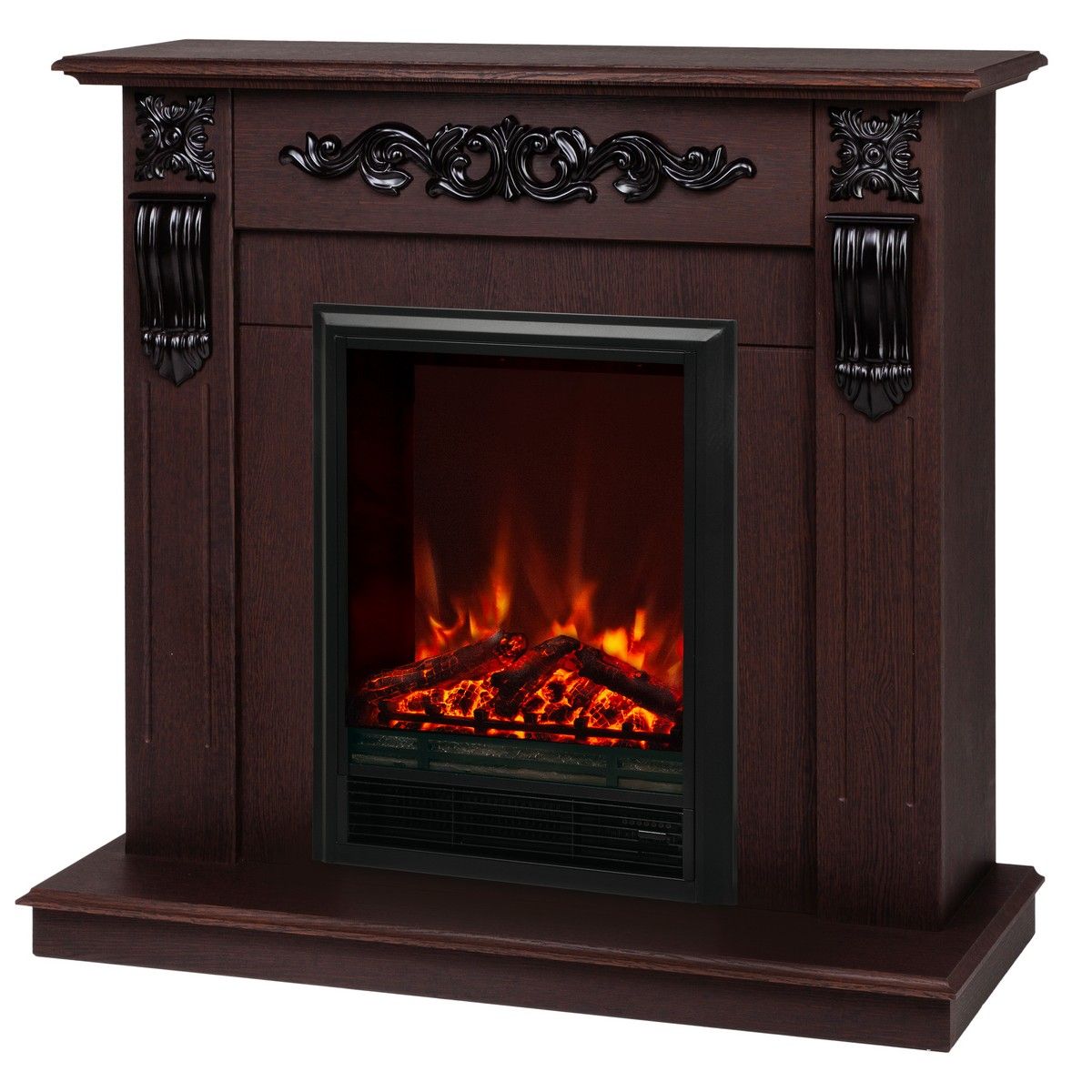 Электрический камин RealFlame Eugene — это обязательный предмет интерьера для вашей гостиной, кухни, спальни или прихожей его предназначением является украшение и декорация вашего дома или офисного помещения. Достигается это посредством имитации пламени на экране очага и конвекторного обогревателя встроенного в корпус. Двухуровневый тепловентилятор обогреет за полчаса любое помещение — спальню, кухню, его можно просто поставить на пол или встроить в каминное обрамление, в нишу или в мебель — есть датчик защиты от перегрева. Камин используют в любую погоду зимой, осенью или весной, в квартире или на даче. Летом можно не включать обогрев — проекционная технология пламени имитирующая настоящий огонь работает в независимом режиме. У электрического очага Eugene по мимо звуковой имитации потрескивания дров есть дополнительные особенности: Пульт ДУ, регулировка яркости пламени, таймер отключения. Камин достаточно универсален в выборе стиля и дизайна оформления помещения.