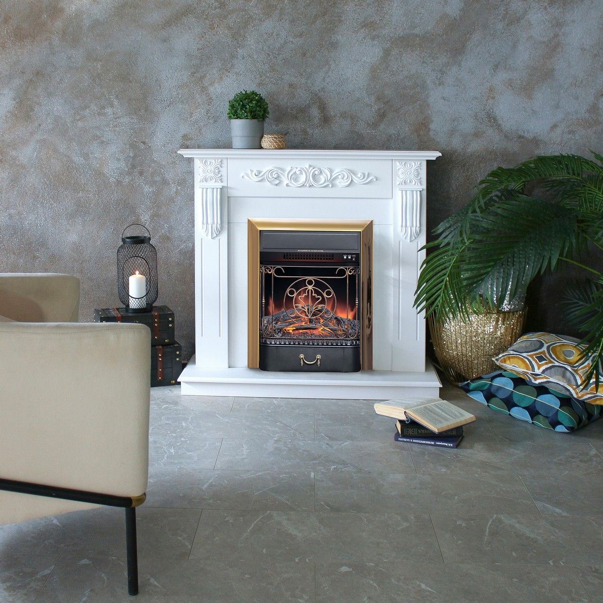 Электрический очаг Majestic Lux предназначен для встраивания в стандартные обрамления. В качестве муляжа — сгоревшие дрова. Нагреватель с поддувом спрятан в козырьке очага и обеспечивает обогрев в холодную погоду. Переключатель позволяет включать на полную (1 500 Вт) или половинную (750 Вт) мощность. В режиме визуализации пламени потребление электроэнергии составляет 80 Вт (две свечеобразные лампы E14 мощностью 40W)