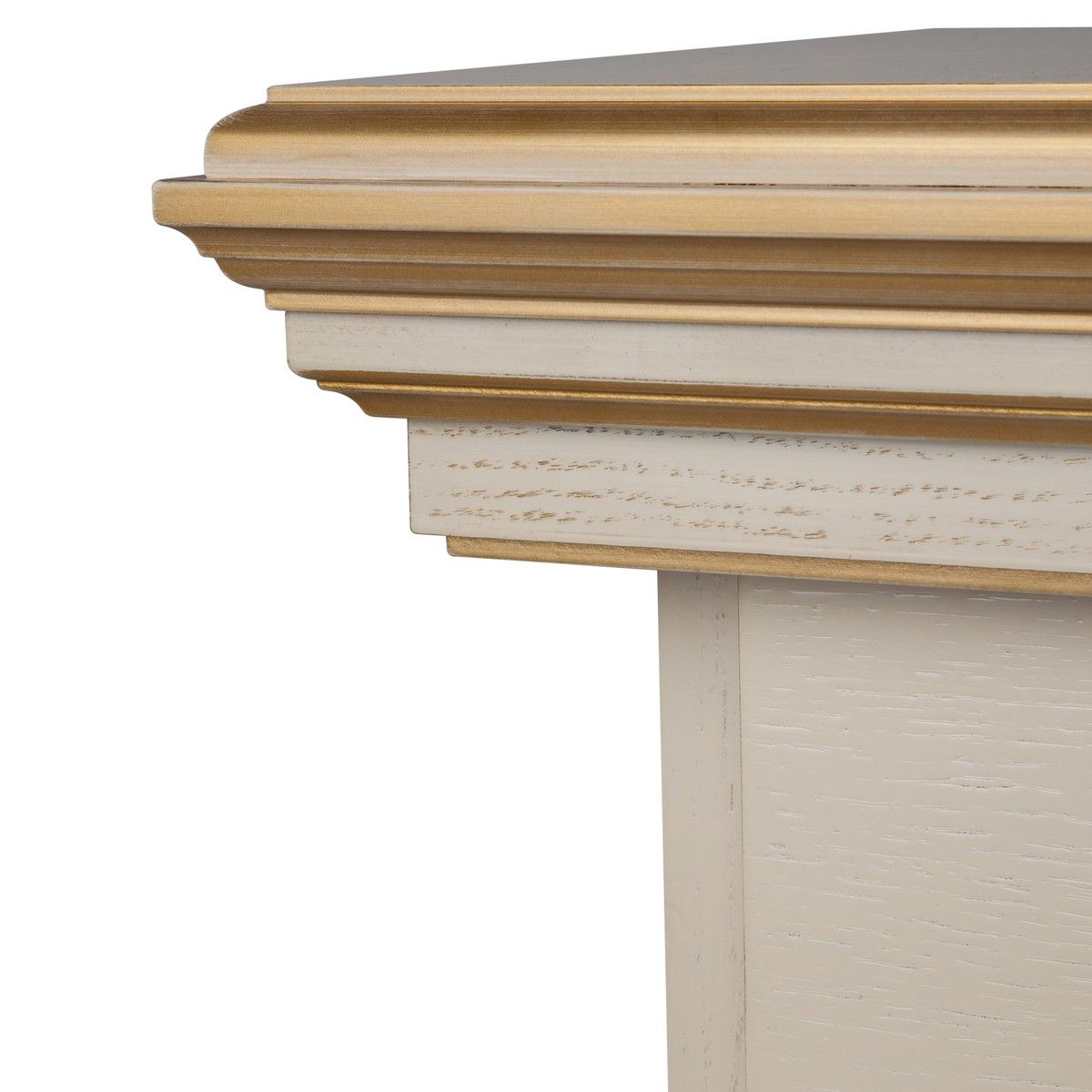 Выполнен в классическом стиле, изготовлен из высококачественного шпонированного МДФ в цвете беленый дуб WT-659 (с золотой патиной)
