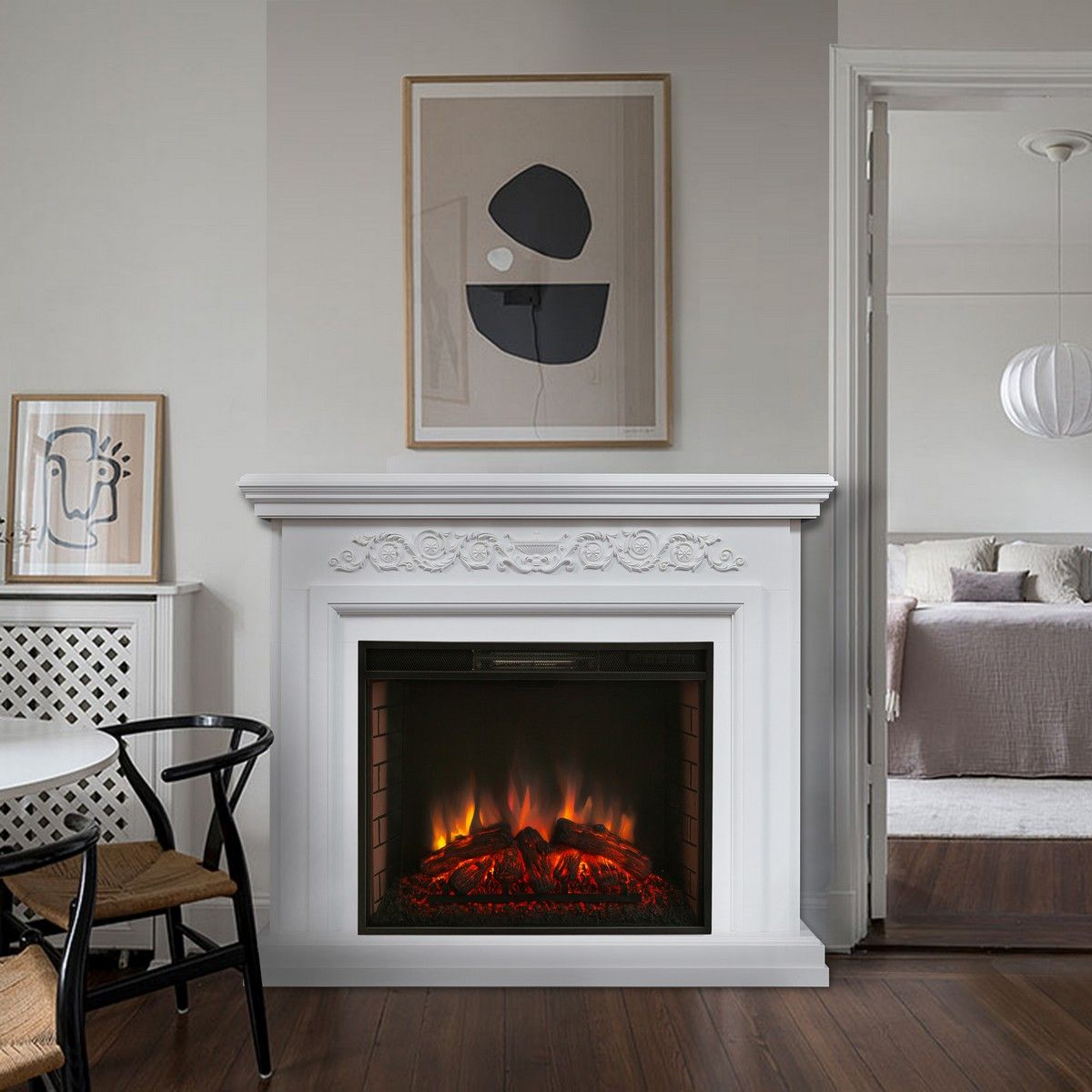 Многофункциональный электрический очаг с дистанционным управлением. Предназначен для встраивания в обрамления. Данная модель имеет обогреватель мощностью до 1,7 кВт, термостат для поддержания заданной температуры, а также таймер на отключение (до 9 часов).