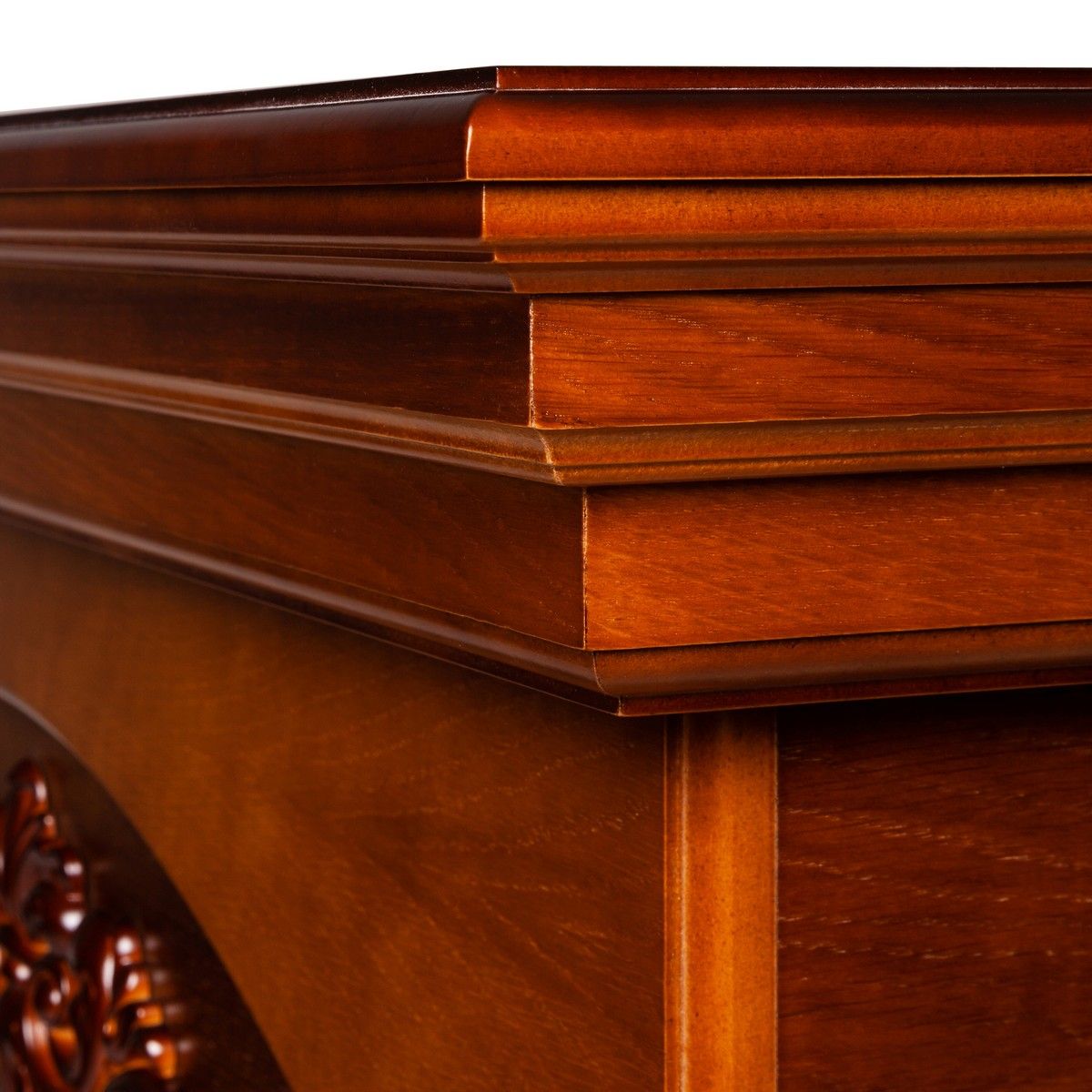 Электрический камин RealFlame Eugene — это обязательный предмет интерьера для вашей гостиной, кухни, спальни или прихожей его предназначением является украшение и декорация вашего дома или офисного помещения. Достигается это посредством имитации пламени на экране очага и конвекторного обогревателя встроенного в корпус. Двухуровневый тепловентилятор обогреет за полчаса любое помещение — спальню, кухню, его можно просто поставить на пол или встроить в каминное обрамление, в нишу или в мебель — есть датчик защиты от перегрева. Камин используют в любую погоду зимой, осенью или весной, в квартире или на даче. Летом можно не включать обогрев — проекционная технология пламени имитирующая настоящий огонь работает в независимом режиме. У электрического очага Eugene по мимо звуковой имитации потрескивания дров есть дополнительные особенности: Пульт ДУ, регулировка яркости пламени, таймер отключения. Камин достаточно универсален в выборе стиля и дизайна оформления помещения.