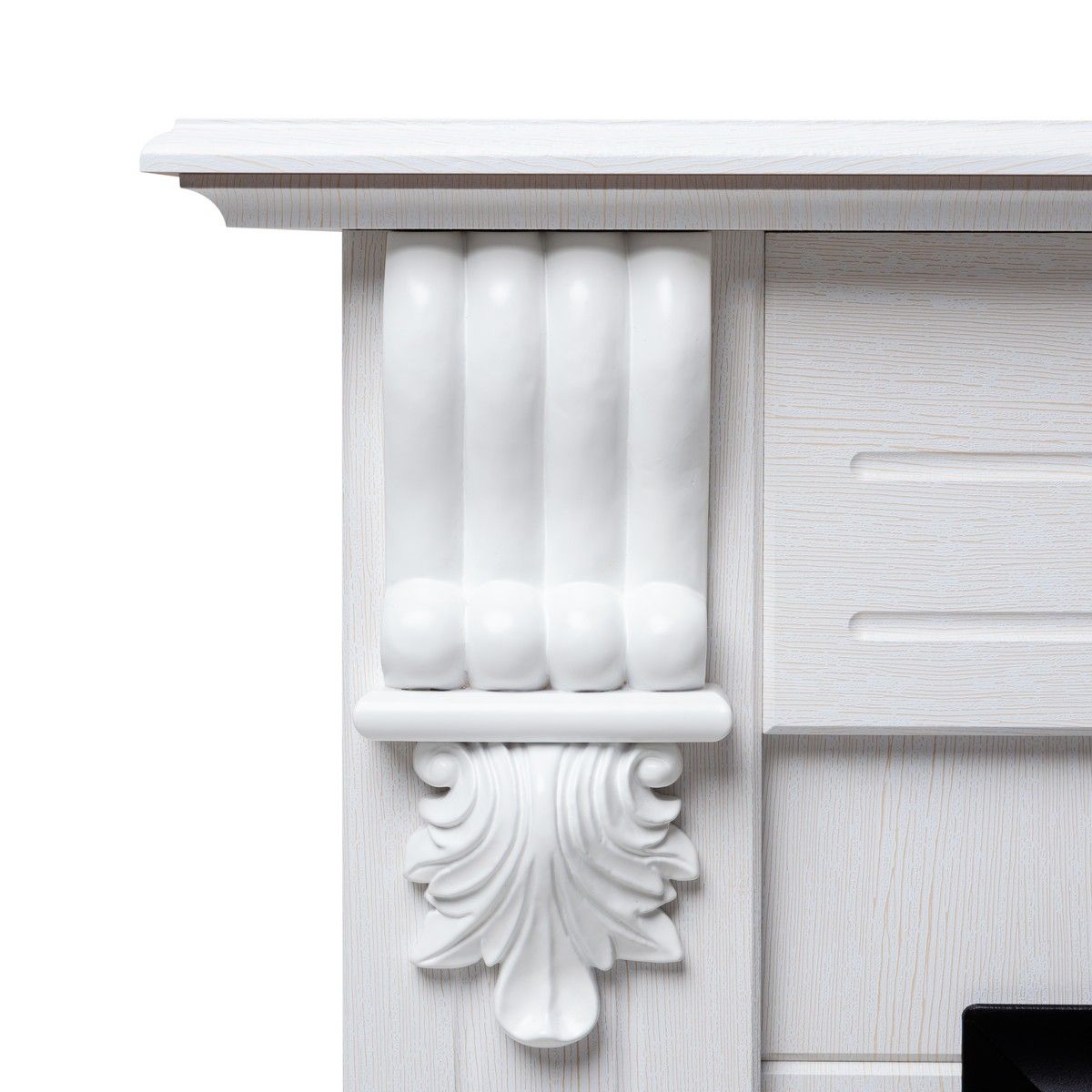 Портал выполнен в высококачественном  эко-шпоне. Подходит для стандартных очагов. Камин имеет компактный размер и достаточно универсален в выборе стиля оформления помещения.  Модель очень надежная и имеет высокие износостойкие характеристики.