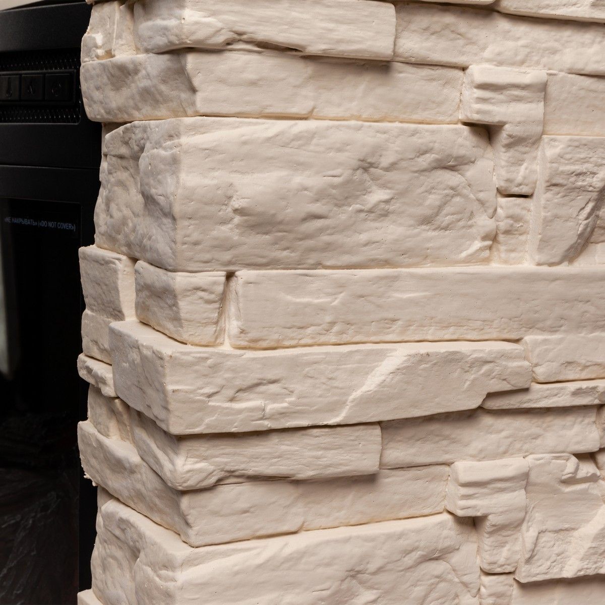 Портал выполнен из шпонированного МДФ и литого камня. Лаконичный дизайн делает его универсальным для различных интерьеров и подходящим как для квартиры, так и для загородного дома.