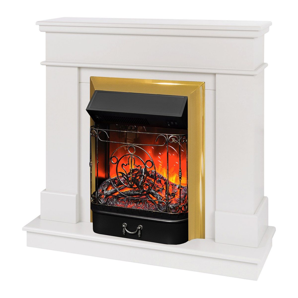 Электрокамин Selena STD WT с очагом Majestic Lux Brass. Габариты (ШxВxГ) 93x93x35 см
