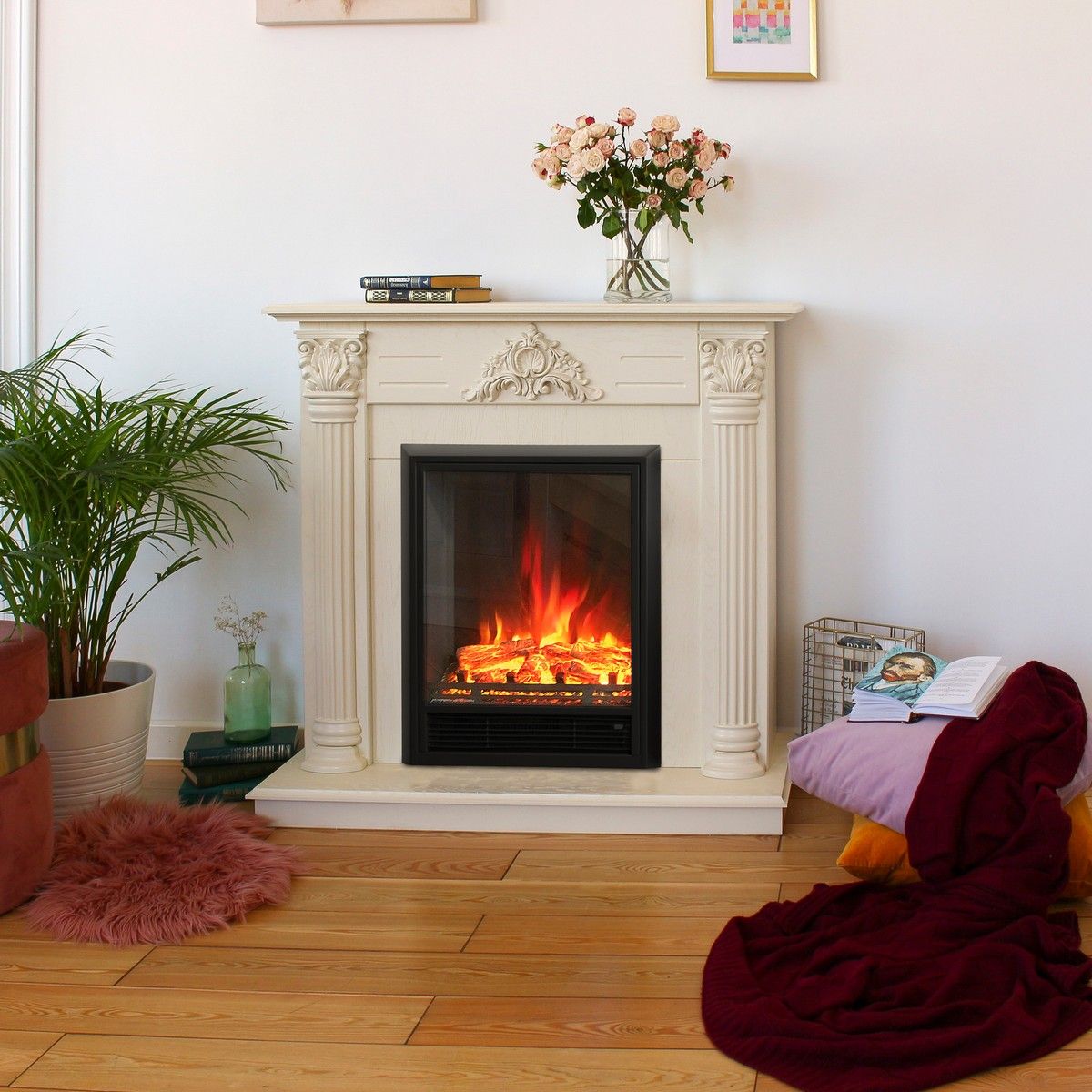 Электрический камин RealFlame Eugene — это обязательный предмет интерьера для вашей гостиной, кухни, спальни или прихожей его предназначением является украшение и декорация вашего дома или офисного помещения. Достигается это посредством имитации пламени на экране очага и конвекторного обогревателя встроенного в корпус. Двухуровневый тепловентилятор обогреет за полчаса любое помещение — спальню, кухню, его можно просто поставить на пол или встроить в каминное обрамление, в нишу или в мебель — есть датчик защиты от перегрева. Камин используют в любую погоду зимой, осенью или весной, в квартире или на даче. Летом можно не включать обогрев — проекционная технология пламени имитирующая настоящий огонь работает в независимом режиме. У электрического очага Eugene по мимо звуковой имитации потрескивания дров есть дополнительные особенности: Пульт ДУ, регулировка яркости пламени, таймер отключения. Камин достаточно универсален в выборе стиля и дизайна оформления помещения.