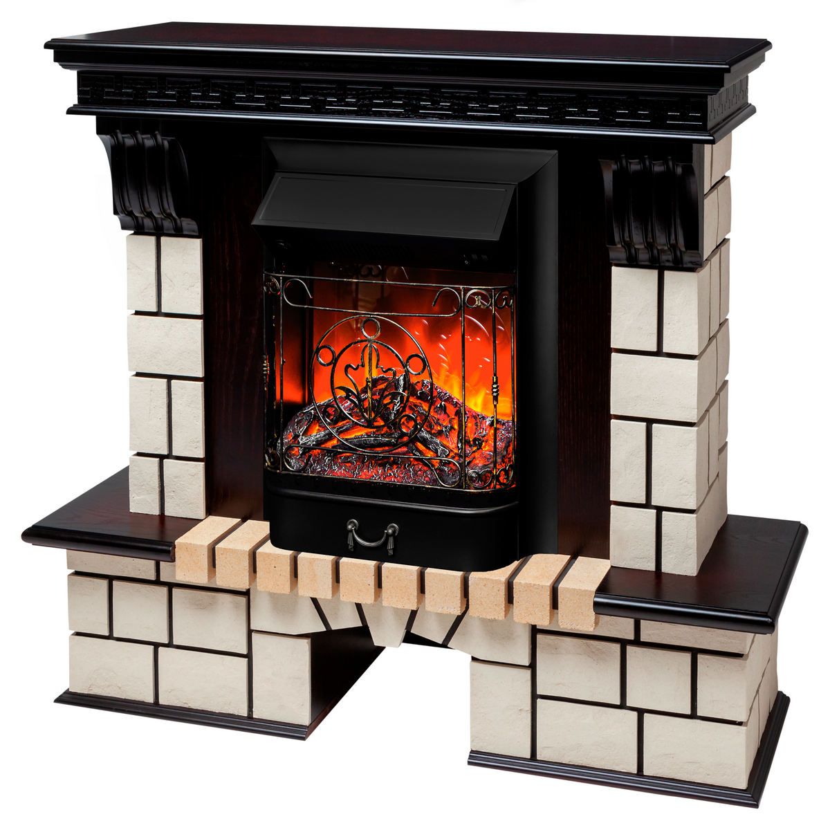 Электрический камин RealFlame Eugene — это обязательный предмет интерьера для вашей гостиной, кухни, спальни или прихожей его предназначением является украшение и декорация вашего дома или офисного помещения. Достигается это посредством имитации пламени на экране очага и конвекторного обогревателя встроенного в корпус. Двухуровневый тепловентилятор обогреет за полчаса любое помещение — спальню, кухню, его можно просто поставить на пол или встроить в каминное обрамление, в нишу или в мебель — есть датчик защиты от перегрева. Камин используют в любую погоду зимой, осенью или весной, в квартире или на даче. Летом можно не включать обогрев — проекционная технология пламени имитирующая настоящий огонь работает в независимом режиме. У электрического очага Eugene по мимо звуковой имитации потрескивания дров есть дополнительные особенности: Пульт ДУ, регулировка яркости пламени, таймер отключения. Камин достаточно универсален в выборе стиля и дизайна оформления помещения.