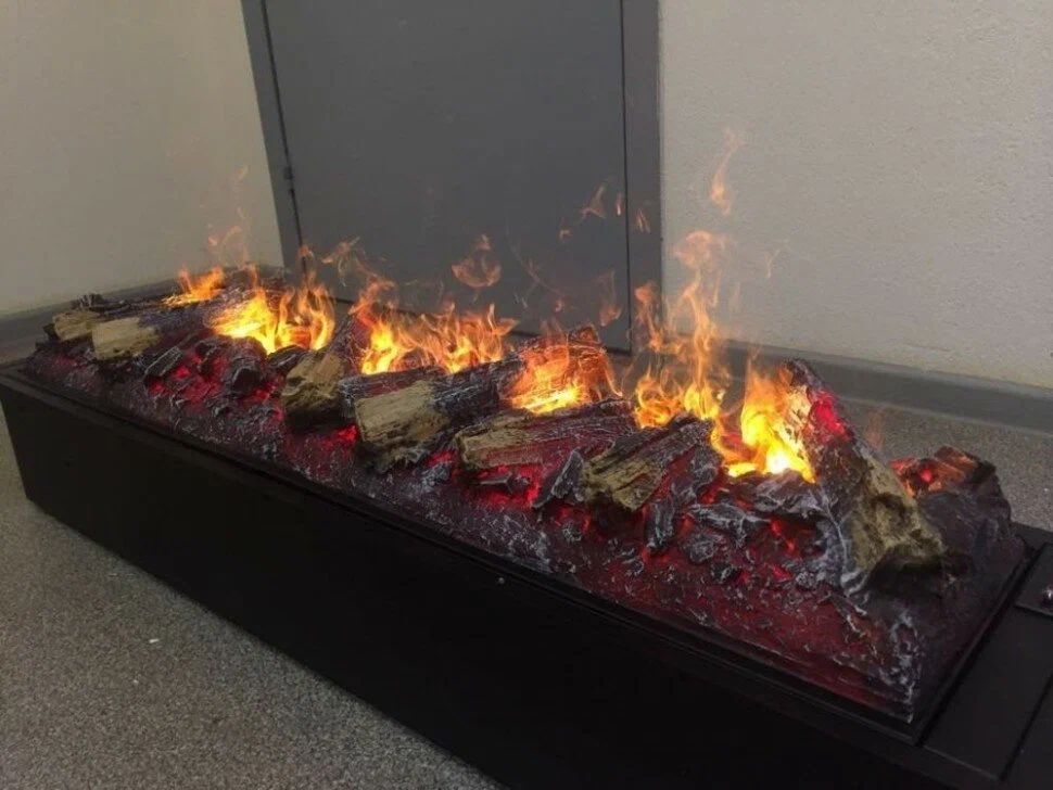 Сверхширокий линейный очаг с технологией пламени 3D. Эффект пламени достигается с помощью парогенератора и галогеновых ламп, что обеспечивает ощущение огня, не отличимого от настоящего.