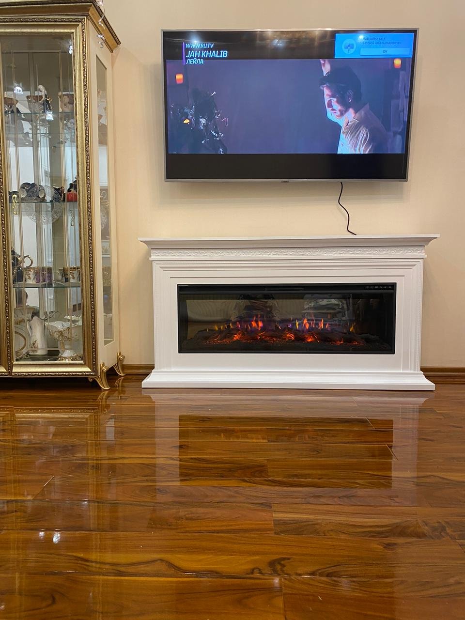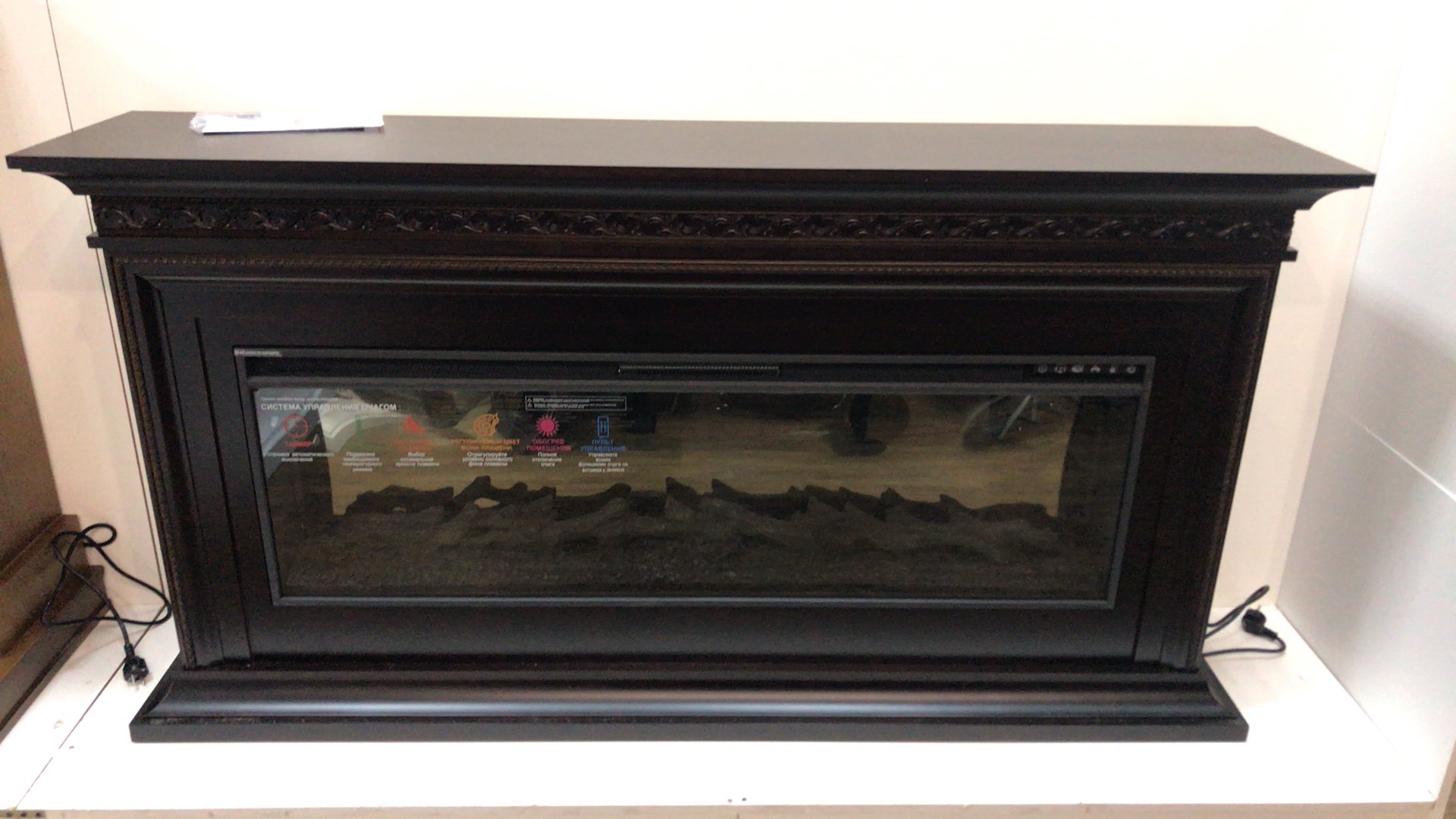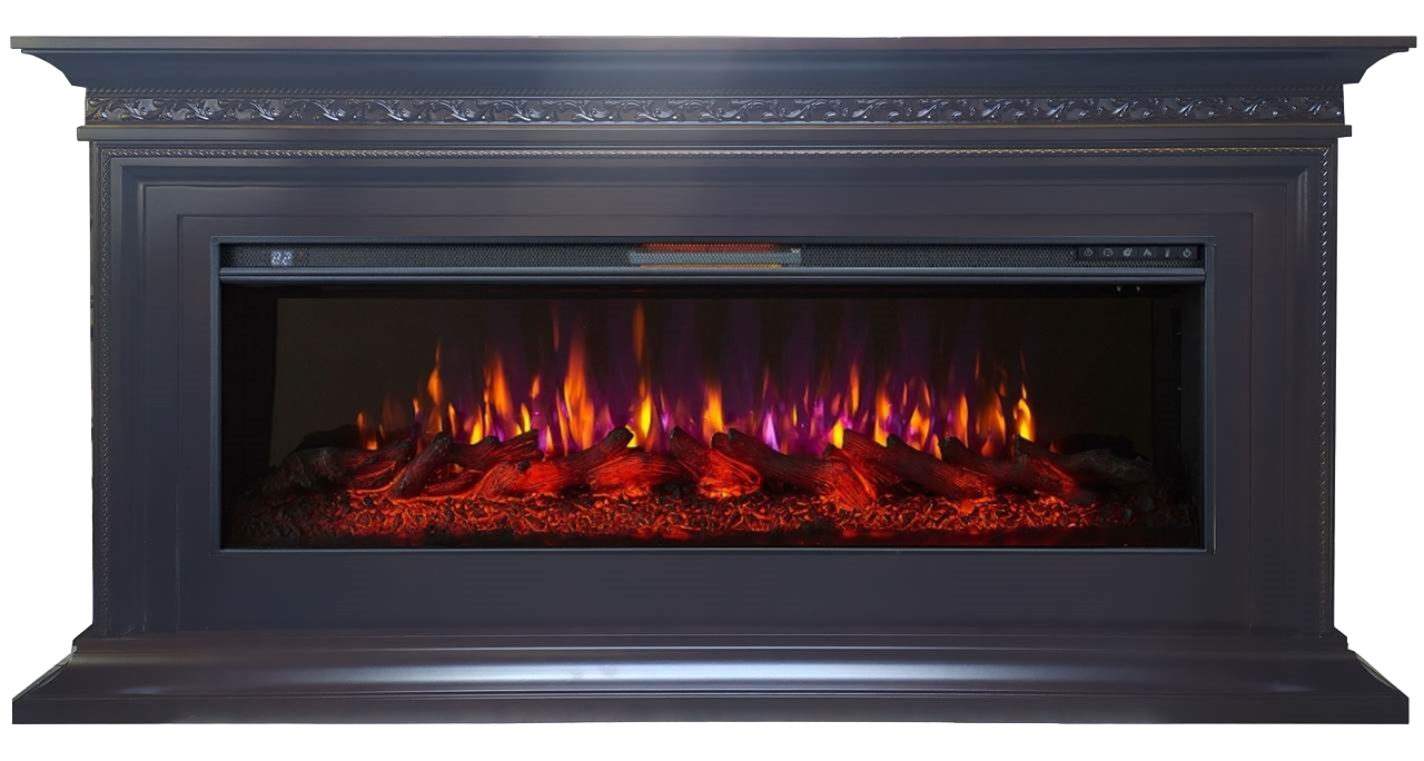Камин в классическом стиле с очагом 50 дюймов. Новый большой очаг (ширина примерно 127 см) с эффектом пылающих поленьев. Крупные, налитые жаром дрова. Эффектное пламя с регулировкой яркости и регулировкой цвета пламени (традиционное красно-жёлтое, с зеленым оттенком, с сиреневым оттенком) Новая функция: Регулировка скорости пламени. Реалистичный звук потрескивающих поленьев. Работа в экономичном декоративном режиме и на обогрев. Кварцевый обогреватель с климатконтролем не сжигает кислород. Таймер на отключение. Все функции с пульта ДУ.