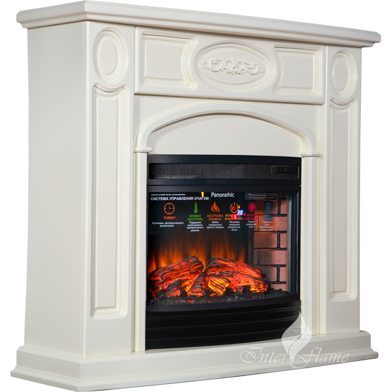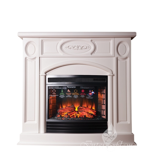 ЮНОНА (цвет на выбор: белый, бежевый с золотой патиной и без, дуб светлый, средний, тёмный, венге, махагон)/ UNONA /с панорамным очагом 25″ Размеры, мм: 1210 (ш) х 1150 (в) х 415 (г)