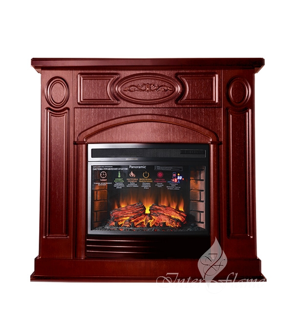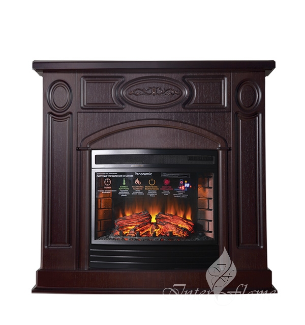 Эффектный очаг на светодиодах с выгнутым панорамным стеклом, ярким пламенем, натуралистичными дровами, кирпичной кладкой внутри топки. Регулировка яркости пламени. Работа с обогревом и без. Мощность обогрева 1,8 кВт. Термостат — климатконтроль для поддержания заданной температуры обогрева. Цифровой дисплей для отображения температуры обогрева и прочих режимов. Все функции с пульта ДУ . Звук потрескивающих дров.